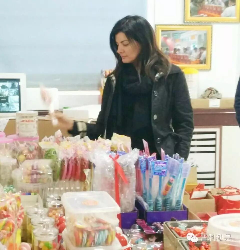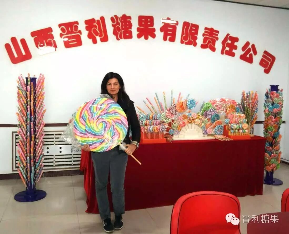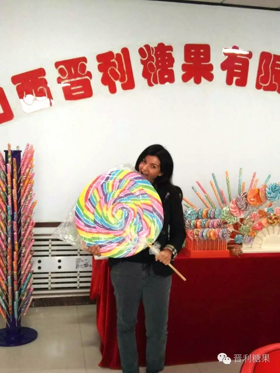 Mirna Hamade拿着重达17斤的巨型波板棒棒糖合影!